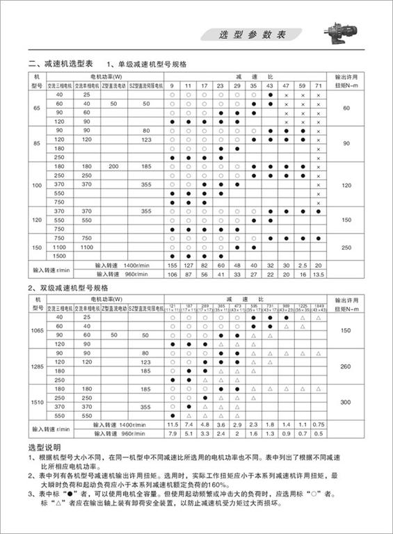 B、X系列擺線針輪減速機(jī)選型參數(shù)表