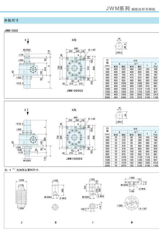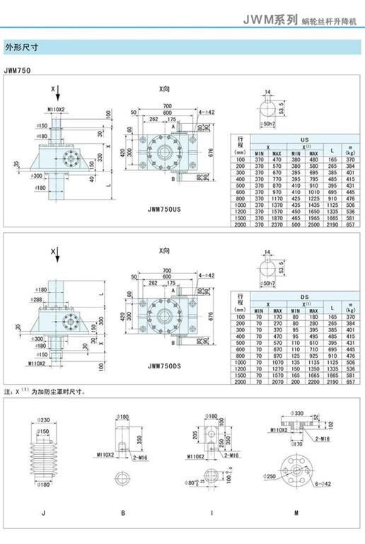 減速機(jī)|蝸輪絲桿升降機(jī)-JWM升降機(jī)750、1000外形尺寸圖-海洋傳動
