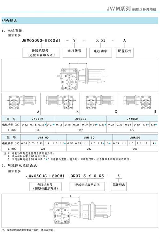 JWM升降機(jī)與電機(jī)直聯(lián)型號表示及與減速電機(jī)組合式