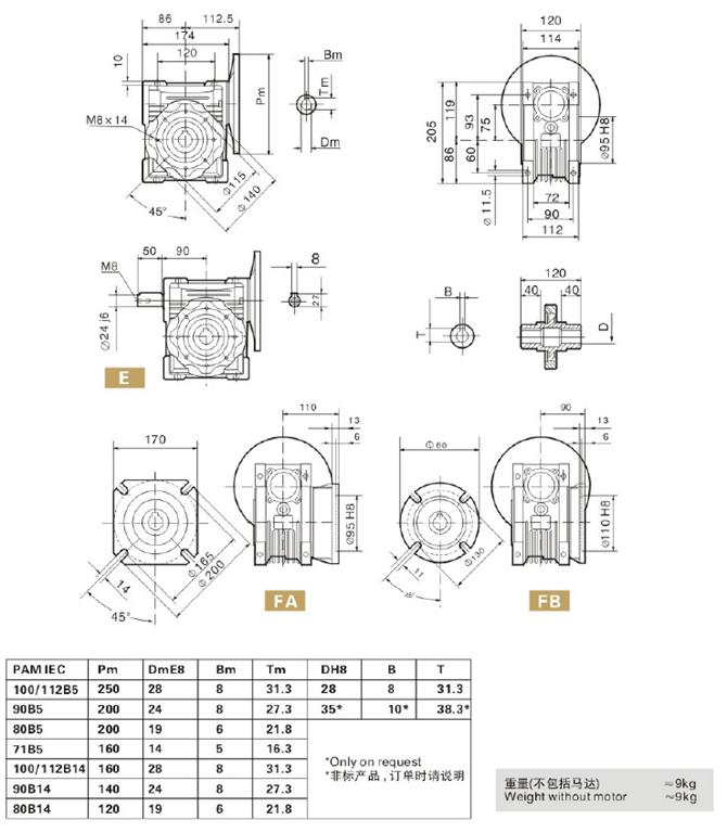RV75減速機(NMRV75減速機)速比有1:5,1:7,51:10,1:15,;20,1:30,1:40,1:50,1:601:70,1:80,1:100等。