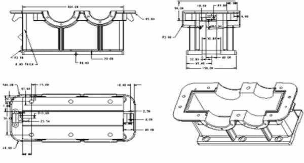 (3) 增加三維視圖。第一步順序點按DRAWING(繪圖)子菜單項Views(視圖)→Add view(增加視圖)|General(一般)|Full View(全視圖)|No Xsec(無剖面)|Scale(比例)|Done(完成);第二步在圖面右下角三維視圖的位置點按左鍵;第三步輸入圖形比例,零件的三維試圖將會出現,系統形成了零件的三維視圖。